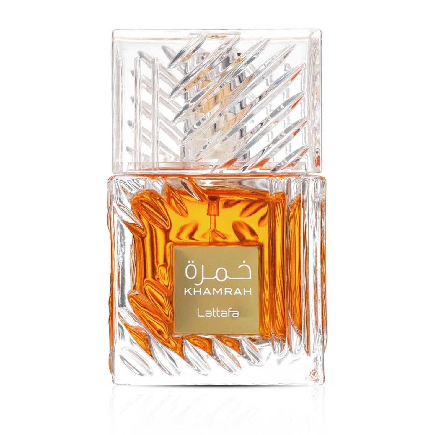 Khamrah by Lattafa Perfumes is an Aromatic Spicy fragrance for women and men. This is a new fragrance. Khamrah was launched in 2022. The top notes are Cinnamon, Nutmeg, and Bergamot; the middle notes are Dates, Praline, Tuberose, and Mahonial; the base notes are Vanilla, Tonka Bean, Amberwood, Myrrh, Benzoin, and Akigalawood.