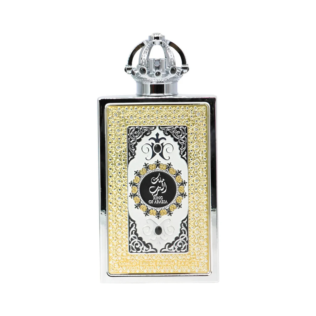 King of Arabia is a bold, spicy‑woody fragrance designed for confident, charismatic men. It opens fresh and citrusy with bergamot and lemon, then warms up with aromatic lavender and spicy cinnamon. The heart brings floral hints from jasmine and geranium, while the base settles into a rich, earthy blend of patchouli, cedarwood, amber, and musk. It’s regal, masculine, and perfect for evening wear or cooler weather.